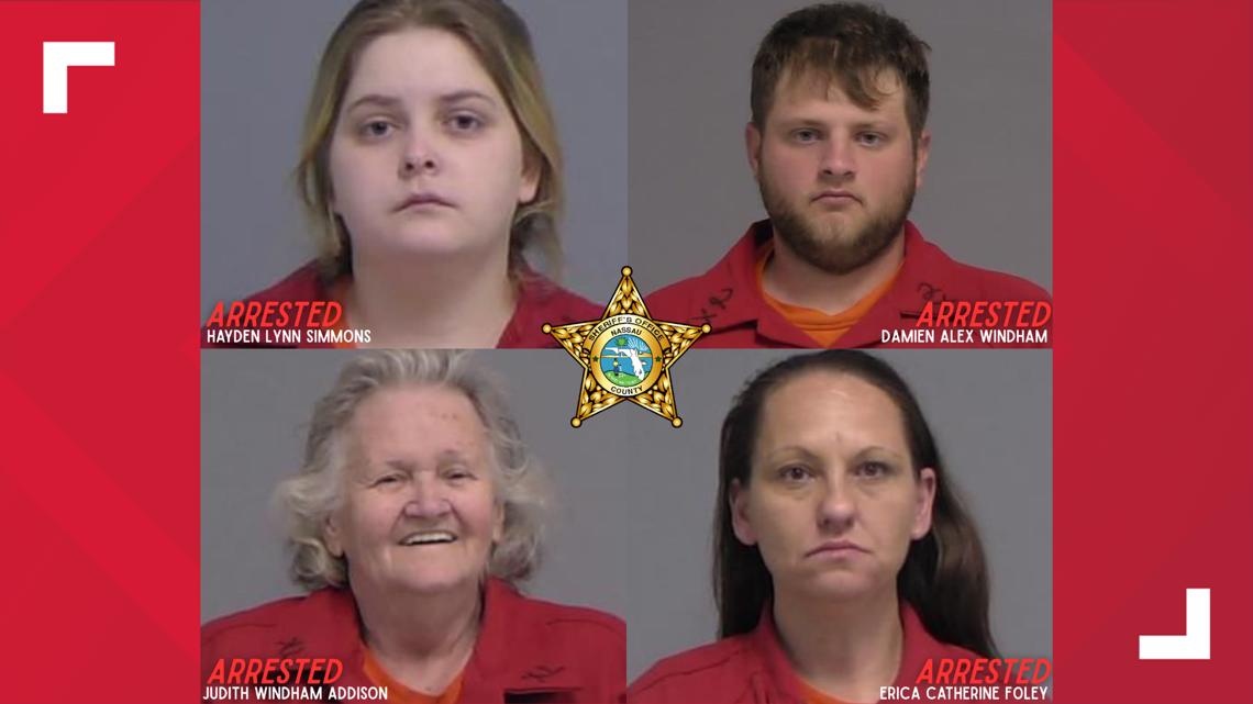 Arrested and charged in connection to the incident are Hayden Simmons, 21, Damien Windham, 21, Erica Foley, 45, and Judith Addison, 79. All four are reported to be permanent residents of the household where the event took place. They are currently held at the Nassau County Jail & Detention Center.