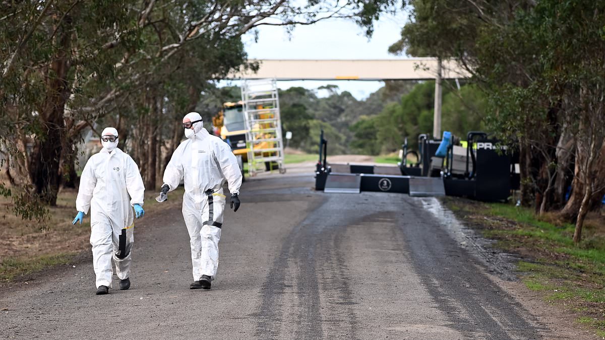 The above shows workers in Hazmat suits in Victoria, Australia, in June last year after they were called to reports of a bird flu outbreak