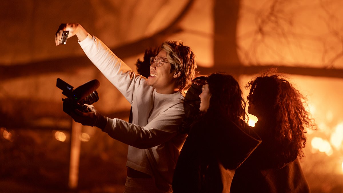 An unidentified group was caught entering an evacuation zone to take selfie photos and videos near burning homes at the Eaton Fire on Tuesday.