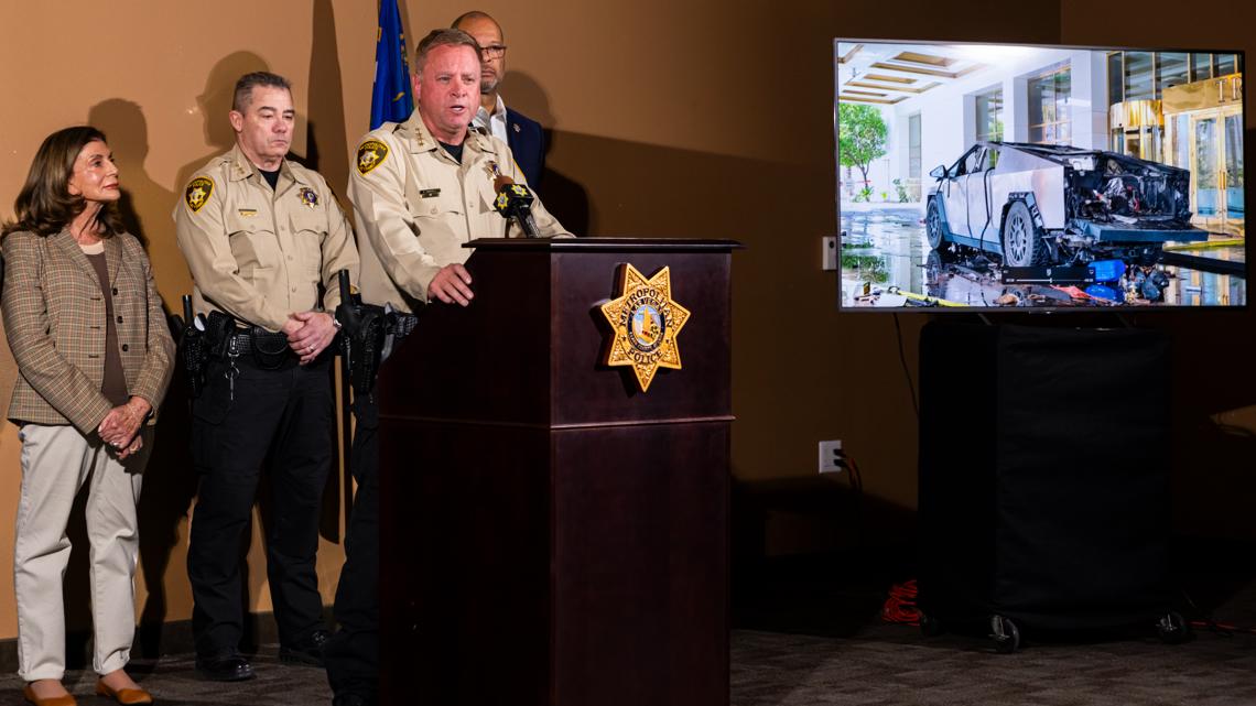 Clark County Sheriff Kevin McMahill said at a news conference that a handgun was found at the feet of the man, who officials believe is Matthew Livelsberger. Officials believe the shot was self-inflicted.