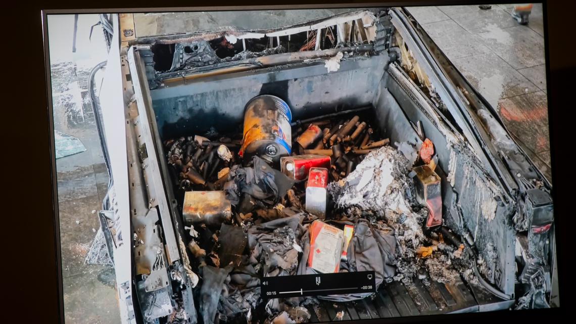 Among other charred items found inside the truck were a second firearm, a number of fireworks, passport, military ID, credit cards, an iPhone and a smartwatch, McMahill said. Authorities said both guns were purchased legally.