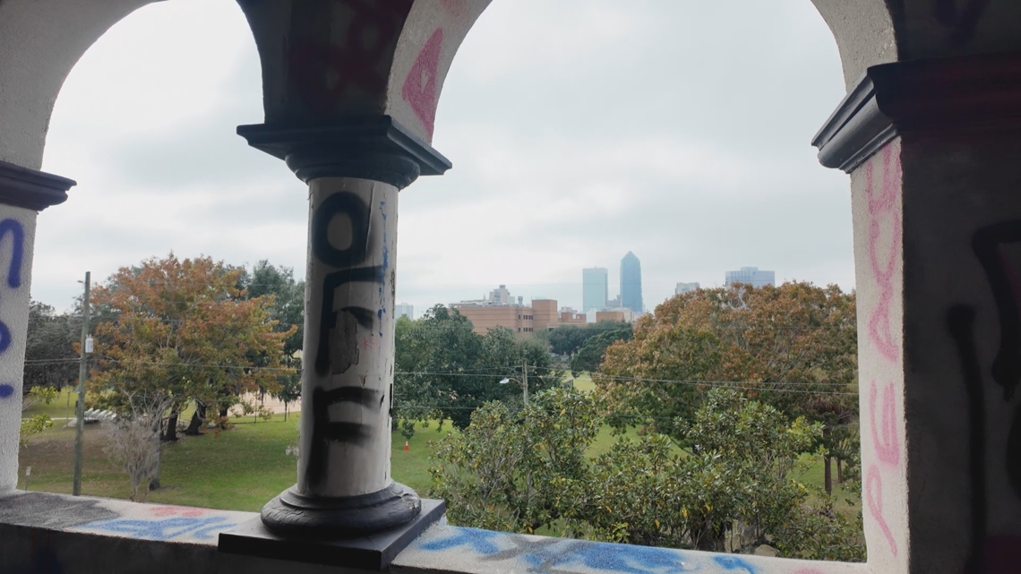 First Coast News took a tour of the home in disrepair. It’s basically down to the studs with graffiti everywhere. There’s evidence of previous owners like an old piano that sits on the second floor and remnants of flowerpot wallpaper on one of the walls.