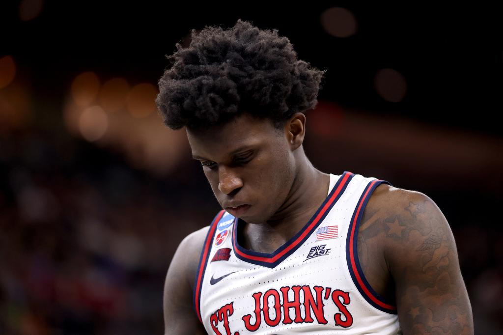 Kadary Richmond reacts dejectedly during St. John’s season-ending loss to Arkansas on March 22, 2025. Getty Images