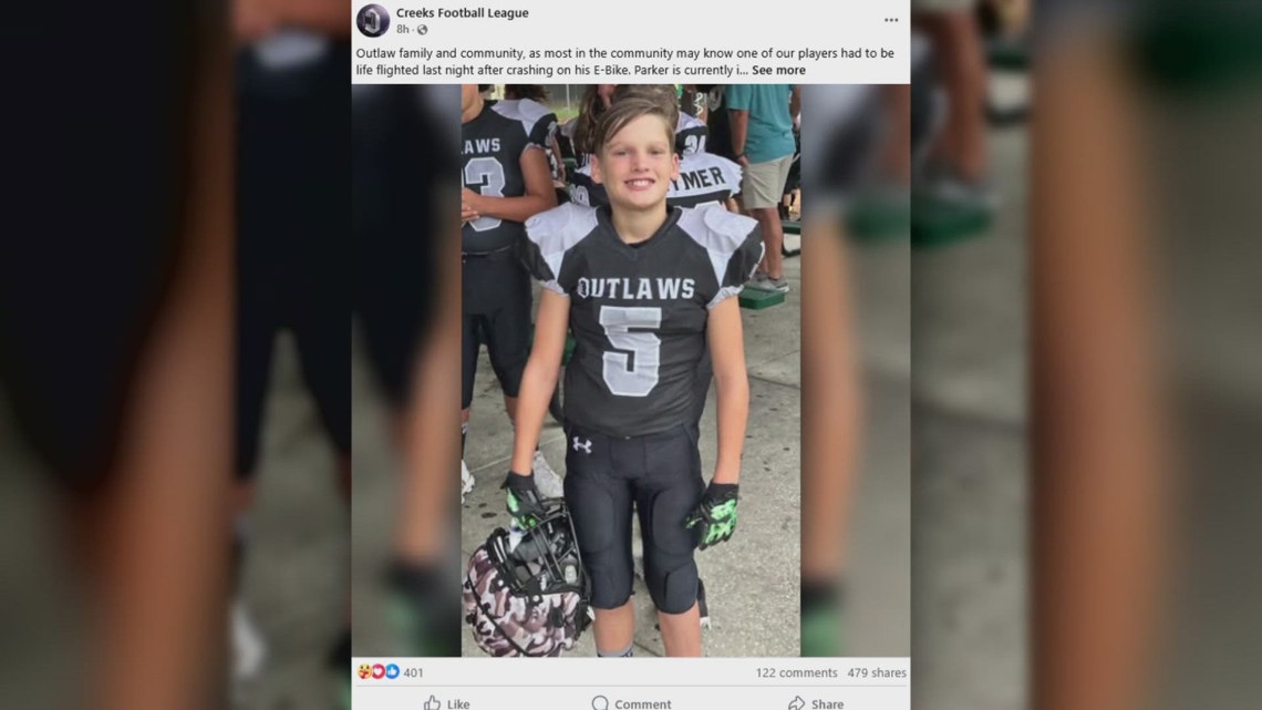 The boy was airlifted to Wolfson Children’s Hospital in Jacksonville, where he is being treated for a serious head injury, according to a GoFundMe page. Authorities said he was not wearing a helmet at the time of the crash.