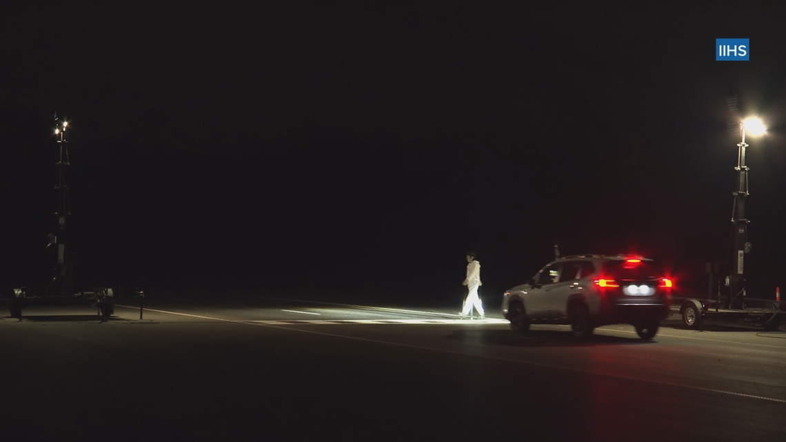 But what about at night? IIHS tested three different 2023 cars: a Honda CRV, a Mazda CX5 and a Subaru Forester.