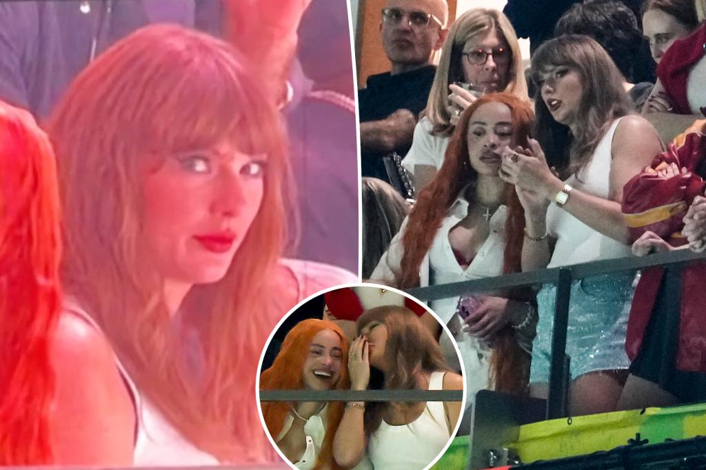 After being caught off guard by the harsh reception to her presence, the singer turned to her pal and rapper Ice Spice in the VIP box.
