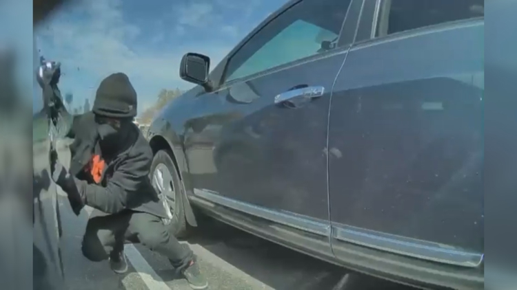 Fortunately, there are plenty of cameras on his car, which also captured this video on the other side, appearing to show the masked man get into a car parked right next to him.