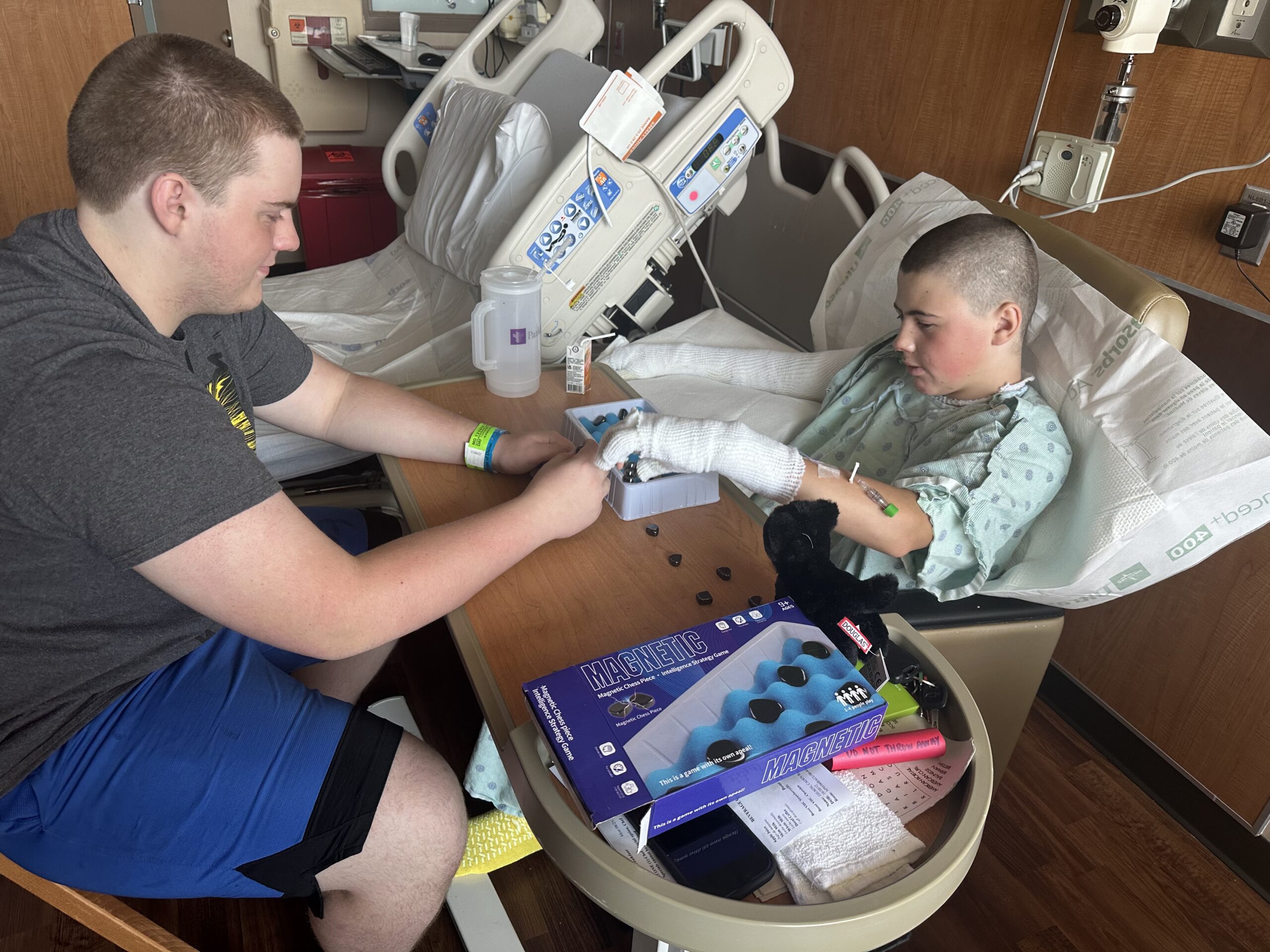 Because of Caden’s older brother’s quick action, he was able to minimize the amount of damage. He pulled off his brother’s shirt and told him to stop, drop and roll to put out the flames.