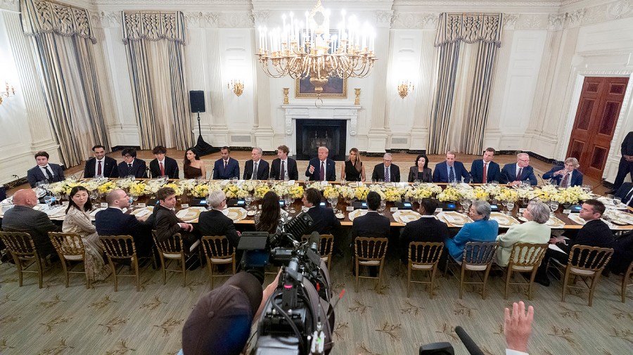 Leaders with companies in that race were also at the event, which occurred hours after first lady Melania Trump hosted tech leaders at a White House roundtable. Greg Brockman, president of OpenAI, Alexandr Wang, founder of Scale.ai and head of super intelligence at Meta, and Sunny Madra, president of Groq were at the dinner.