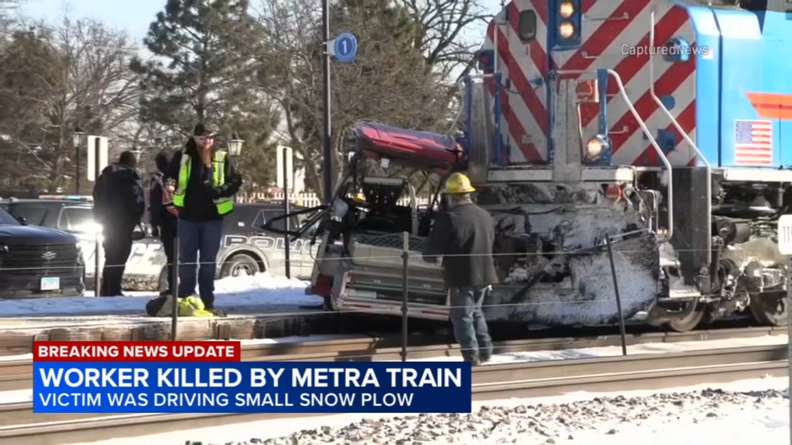 Metra said a village of Bartlett employee was driving a small vehicle with a snowplow attached when it was struck by a train. No Metra passengers were injured.