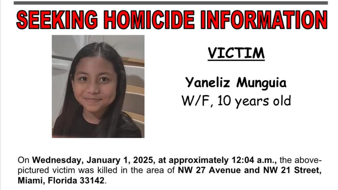 Yaneliz Munguia, who just turned 10 on Dec. 26, was celebrating with family members on Northwest 27th Avenue in Allapattah when she suddenly collapsed, officials said.