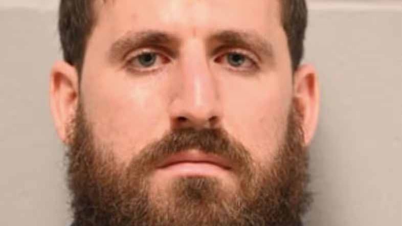 Matthew’s grown-out facial hair and deadpan stare matched his mugshot – which was released by prosecutors late on Monday. He was wearing a white t-shirt with a black jacket.