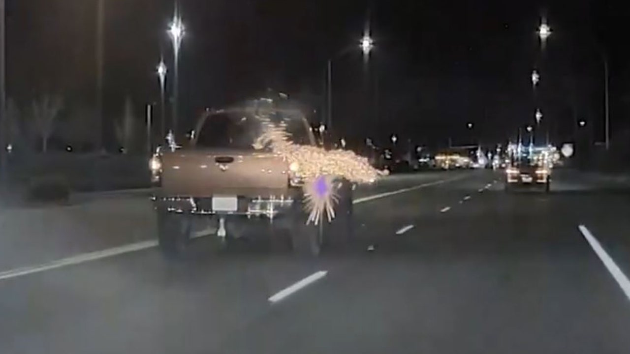 Cameras on the woman’s vehicle captured Roman candle-style fireworks launching from the pickup, according to video of the incident.