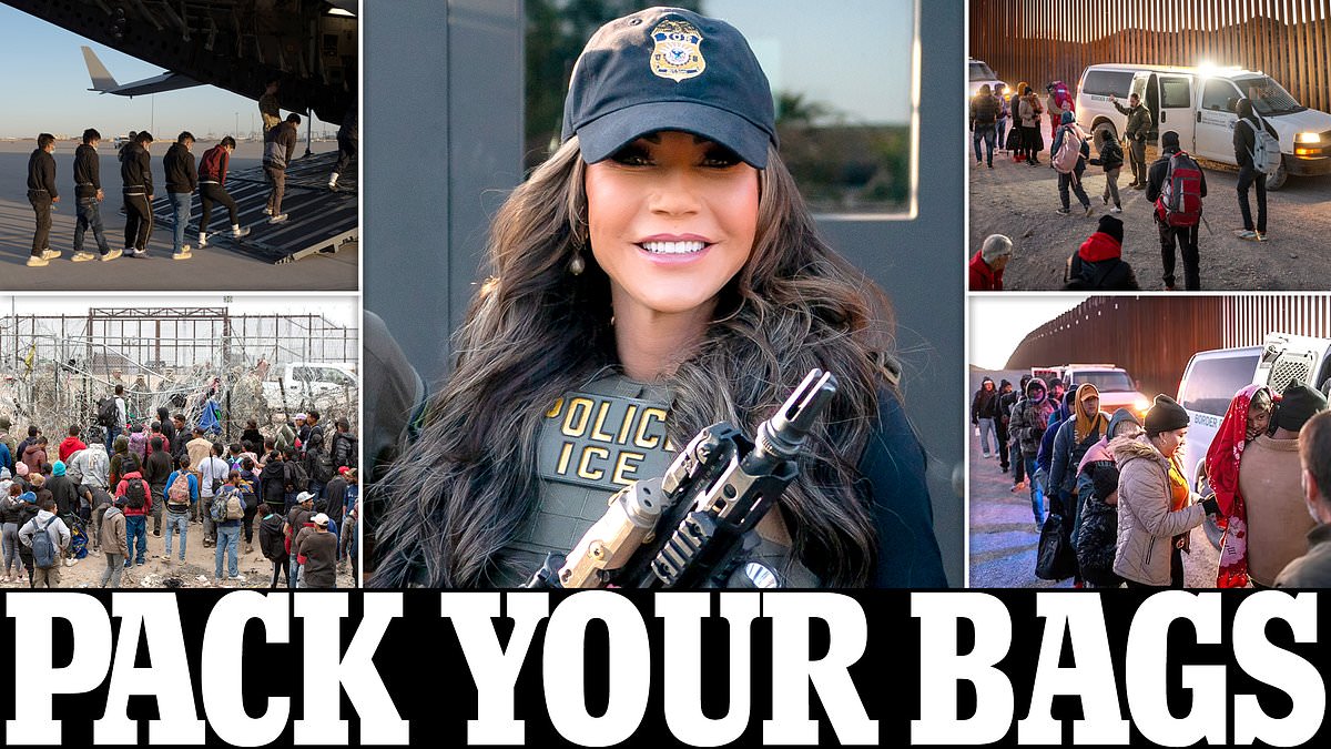 Migrants who were temporarily allowed to live in the United States by using a Biden-era online appointment app have been told to leave the country ‘immediately,’ Kristi Noem’s (pictured center) Department of Homeland Security said Monday