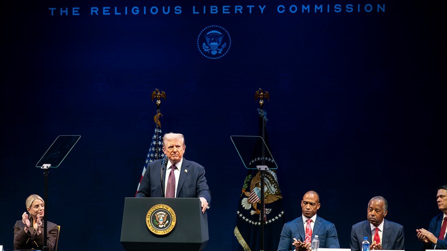 Trump thanked his White House Religious Liberty Commission for guiding his work on these issues, which has amounted to what a White House press release characterized as “100 victories for people of faith.”