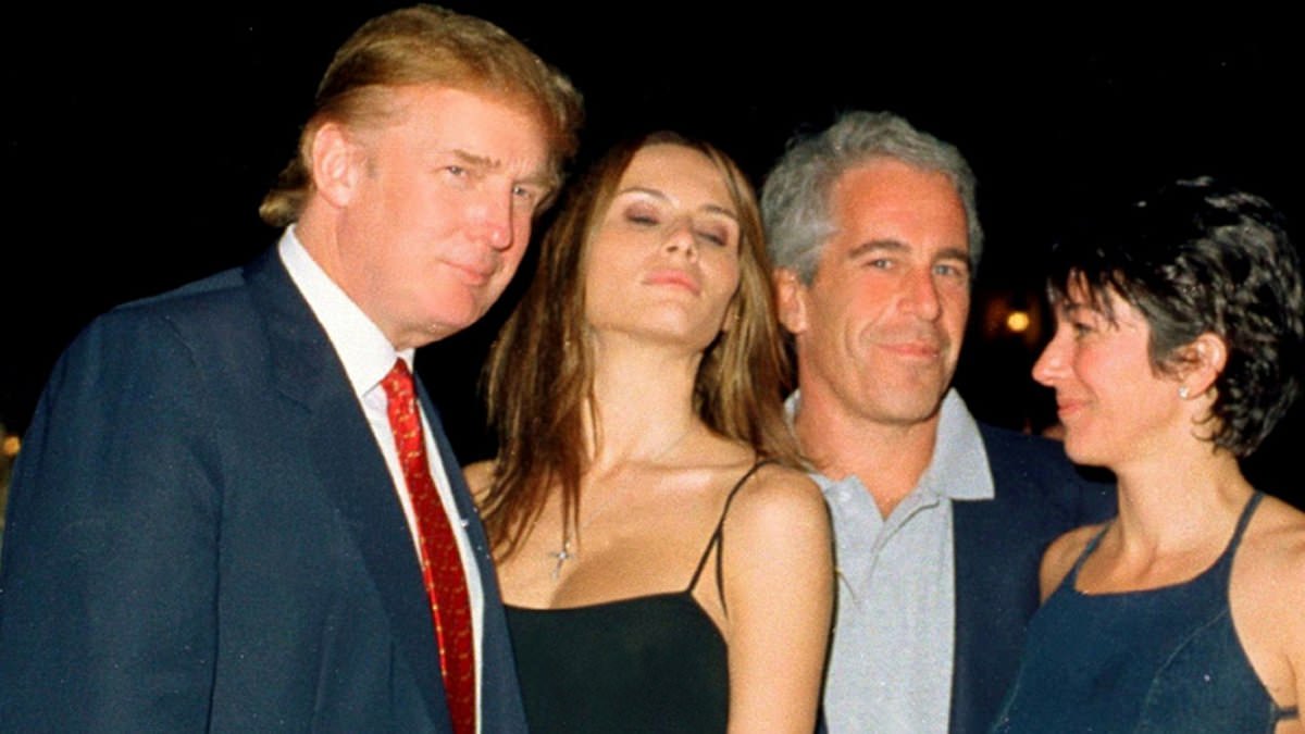 Donald Trump, his then-girlfriend Melania Knauss (now Trump), Jeffrey Epstein and Ghislaine Maxwell pose together at the Mar-a-Lago club in Palm Beach, Florida on February 12, 2000
