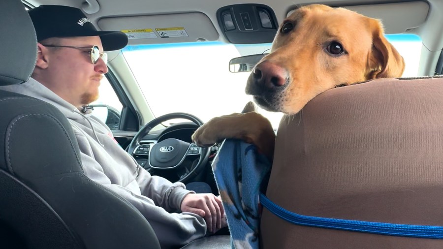 The now-famous dog’s owner, Kevin Ferman, said he adopted Bowie a couple of years ago from a friend whose mom and rescued a litter of lab puppies in New Mexico. Ferman, who had been an Uber driver for about ten years, then quickly realized he couldn’t just leave his new rescue dog home all the time.