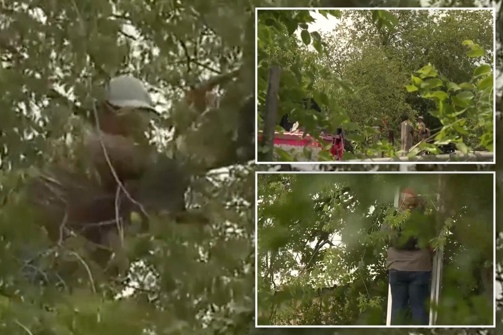 Bizarre video showed him high up the tree as ICE agents waited below.