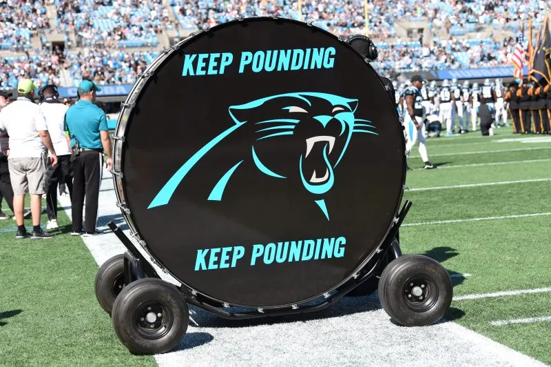 CHARLOTTE, NC – OCTOBER 29: The Carolina Panthers ‘Keep Pounding’ drum is on display prior to a game featuring the Houston Texans and the Carolina Panthers on October 29, 2023, at Bank of America Stadium in Charlotte, N.C. (Photo by John Rivera/Icon Sportswire via Getty Images)