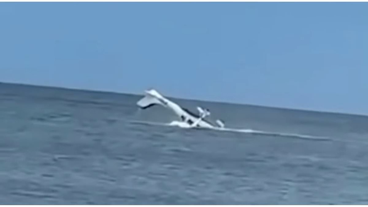 Footage shows his plane coming in low and skidding across the top of the surface, before it flips over and lands in the water upside down.