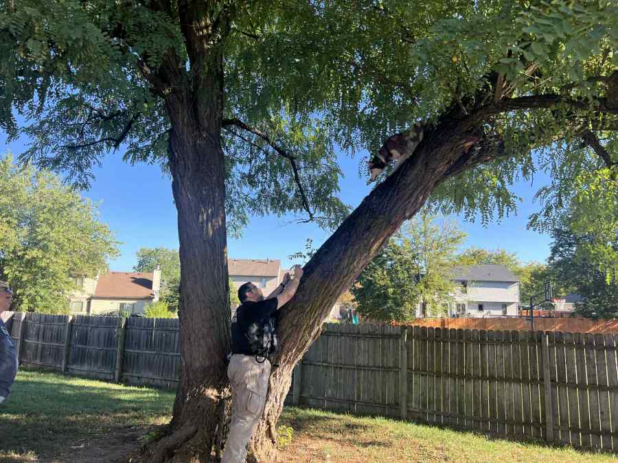 FWACC shared the officer’s bodycam footage with WANE 15, where Animal Control Officer Taylor guides Aurora down the tree and is reunited with her owner.