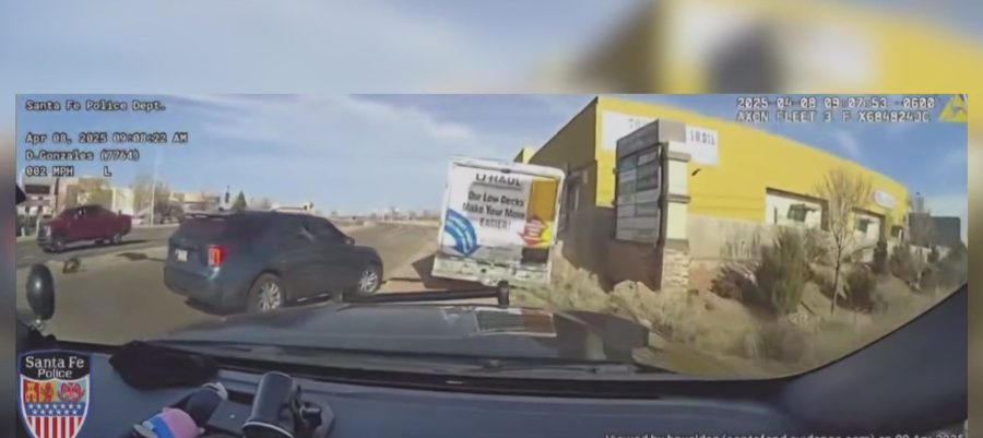 SANTA FE, N.M. (KRQE) – New video has been released from a police chase where 50-year-old Stacy Walker led law enforcement on a chase through Santa Fe in a U-Haul Truck. Footage of the chase shows the U-Haul fleeing from authorities, with two people locked in the back. Walker can be seen leading law enforcement on a chase through busy roads and neighborhoods.