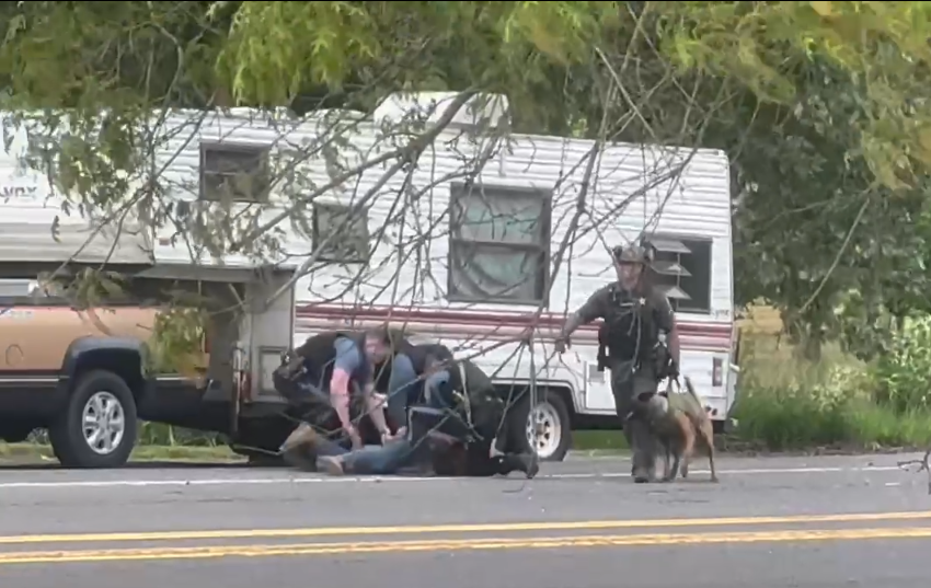 Footage of the incident obtained by affiliate KOIN 6 News shows the man eventually getting out of his vehicle, then an OSP K-9 unit tackling and biting him just before his arrest.