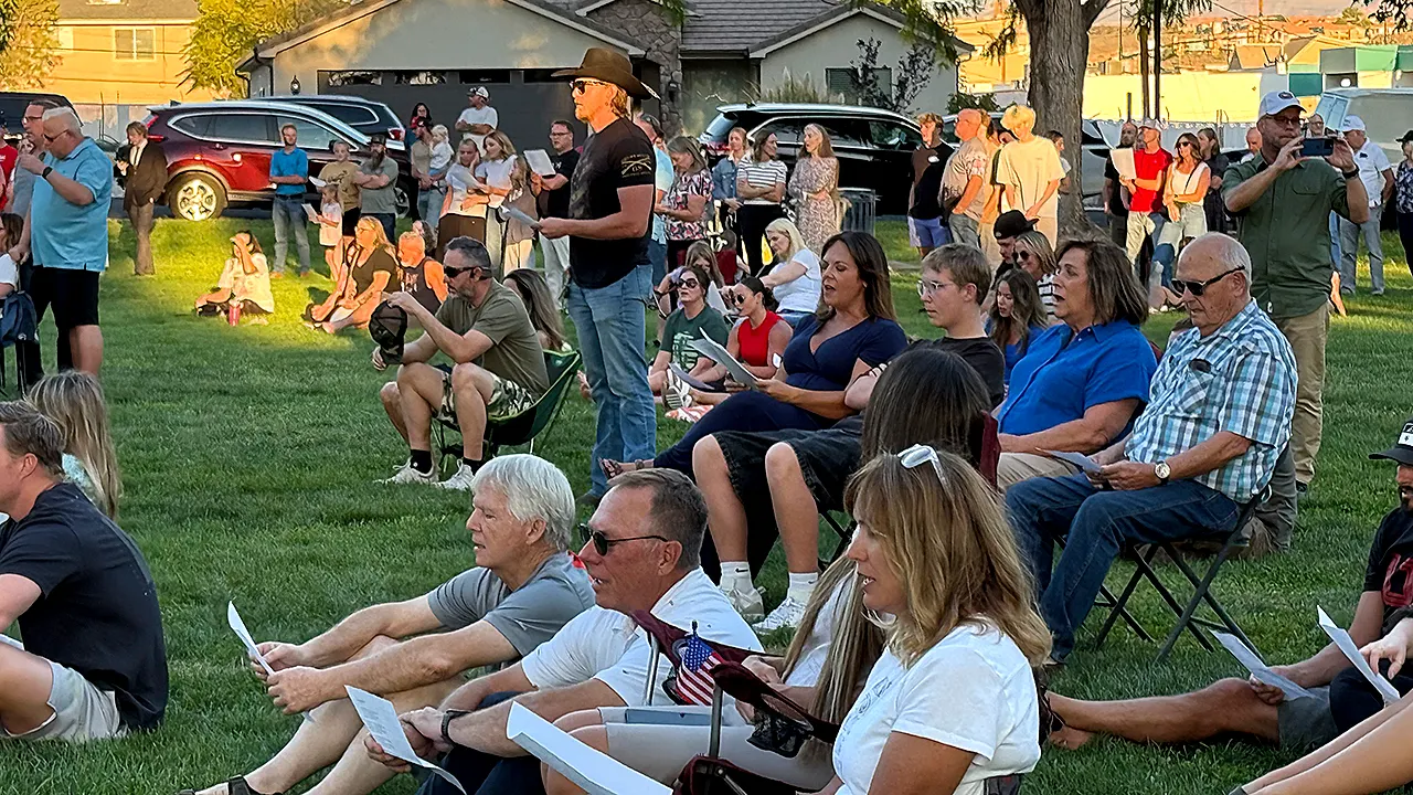 Attendees listen as speakers call for unity during a vigil in Washington City, Utah, on Sept. 14, 2025. (Fox News Digital)