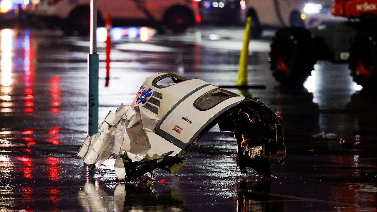 First responders work the scene after what witnesses say was a plane crash in Philadelphia on Friday, Jan. 31, 2025. (Matt Rourke/AP)