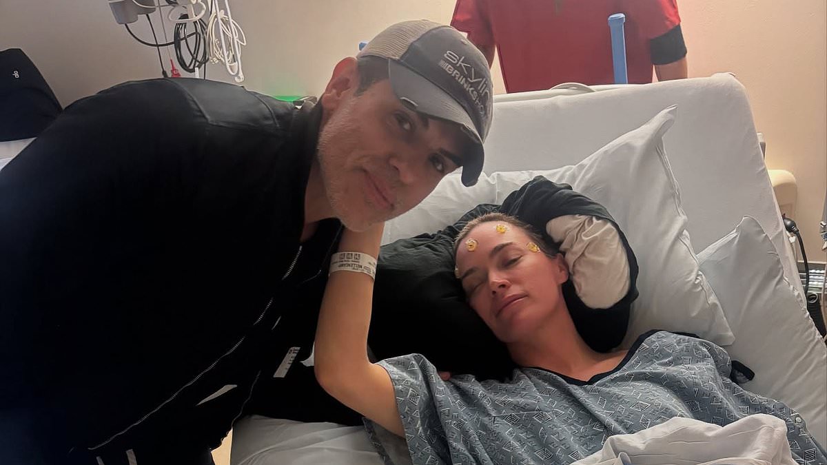One image showed Mellencamp, with devices on her forehead, holding onto Arroyave’s neck as he lent over her hospital bed.