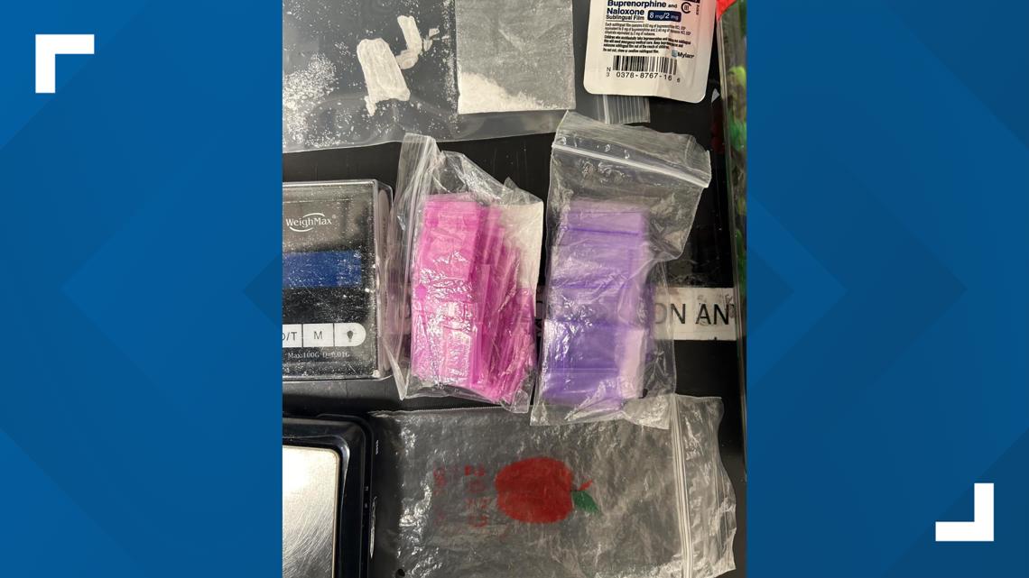 It had methamphetamine, needles, Narcan, digital scales, small baggies, cut straws and other drug paraphernalia.